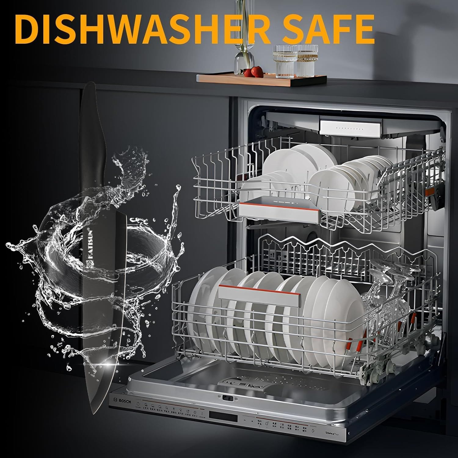 15 Pieces Professional Black Coding Kitchen Knife Set with Black Wooden Block, Non-slip ABS Handle for Chef Knives, Plastic Cutting Board, and Kitchen Shears for Family and Restaurant
